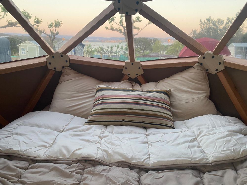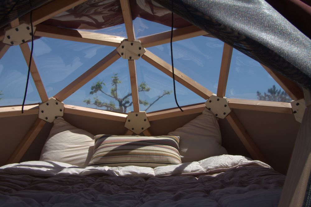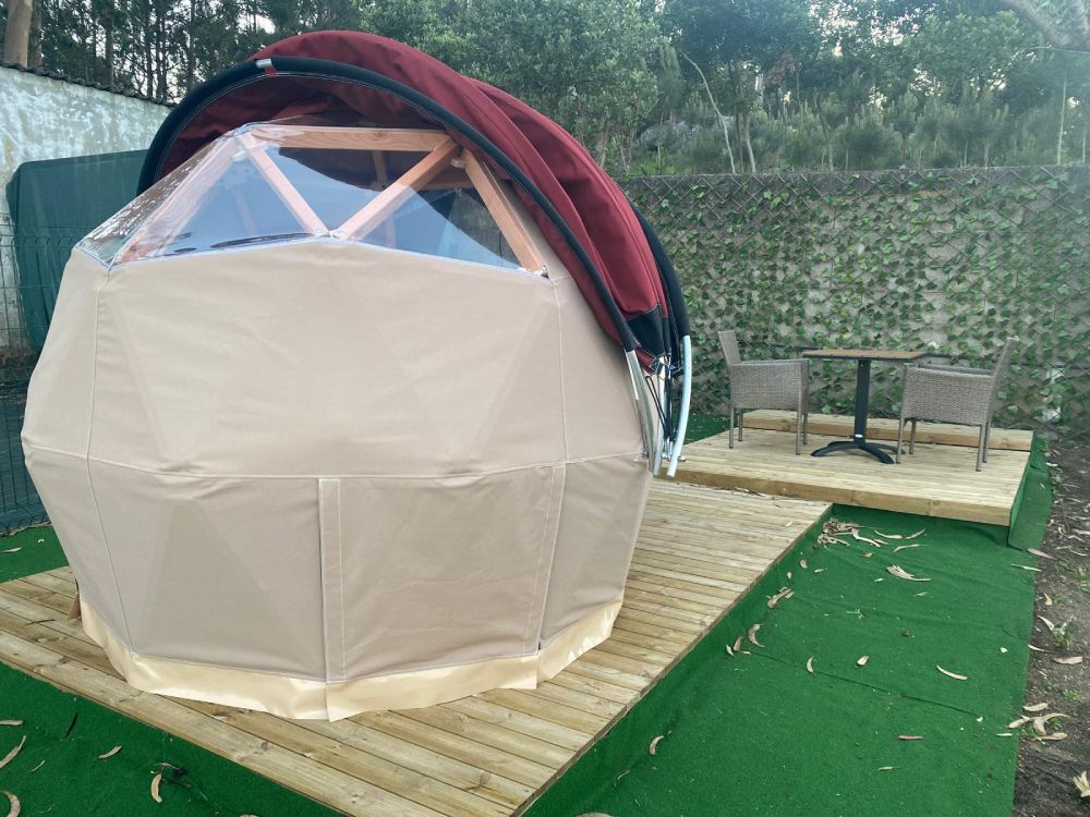 Cúpula  geodésica y efecto burbuja de la tienda india. Tiene una apertura de PVC cristal diseñada para observar la naturaleza y contemplar el cielo estrellado.